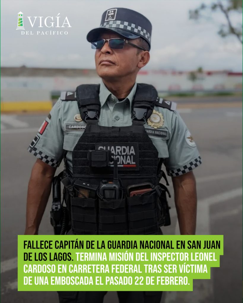 El capitán segundo Leonel Cardoso Gómez falleció este domingo en San Juan de los Lagos, Jalisco, durante una confrontación con integrantes de un grupo criminal. El mando de la Guardia Nacional (GN), quien se desempeñaba como Inspector Coordinador de Vías de Comunicación en Aguascalientes, acudió al auxilio de sus compañeros tras registrarse ataques derivados de la captura y muerte de un líder delictivo.