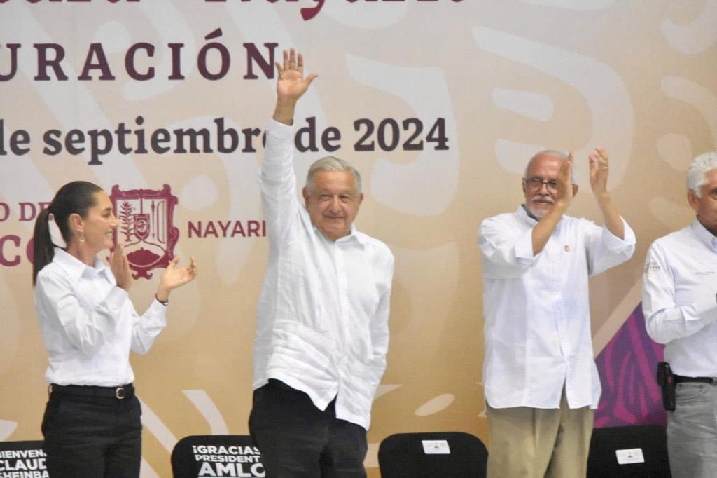 Da la bienvenida el gobernador Navarro. “Gracias por adoptar a Nayarit”, le dice al Presidente. Recordará el lejano 2005, cuando se encontró con él, en el tesonero camino a la conducción de México. No la canta, pero lee algunas estrofas de la canción de Diego Torres Color Esperanza, aquel himno electoral perredista: “Pintarse la cara/color esperanza/tentar al futuro/con el corazón.” Se dirige a la sucesora de Obrador. Le pide: “Adopte a Nayarit, doctora”. Claudia responde con una sonrisa. Será interpretada por la concurrencia como un sí. Viene un video con un recuento en Nayarit de los beneficios y obras del gobierno federal que concluye.
