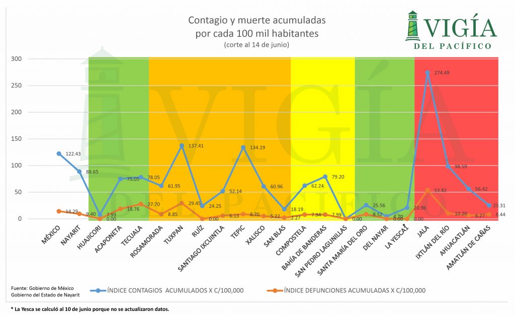 1️⃣ Éstas son las gráficas y las tablas de contagios y muertes ⚰️ por Covid-19 para México, Nayarit y los municipios del estado, ⚱️ al corte de ayer domingo 14 de junio.