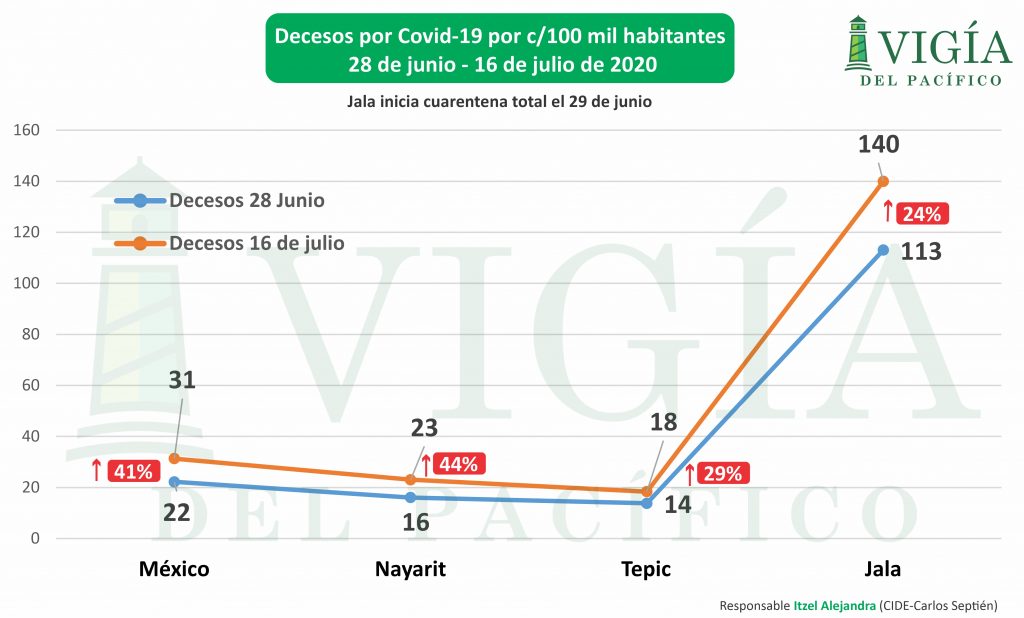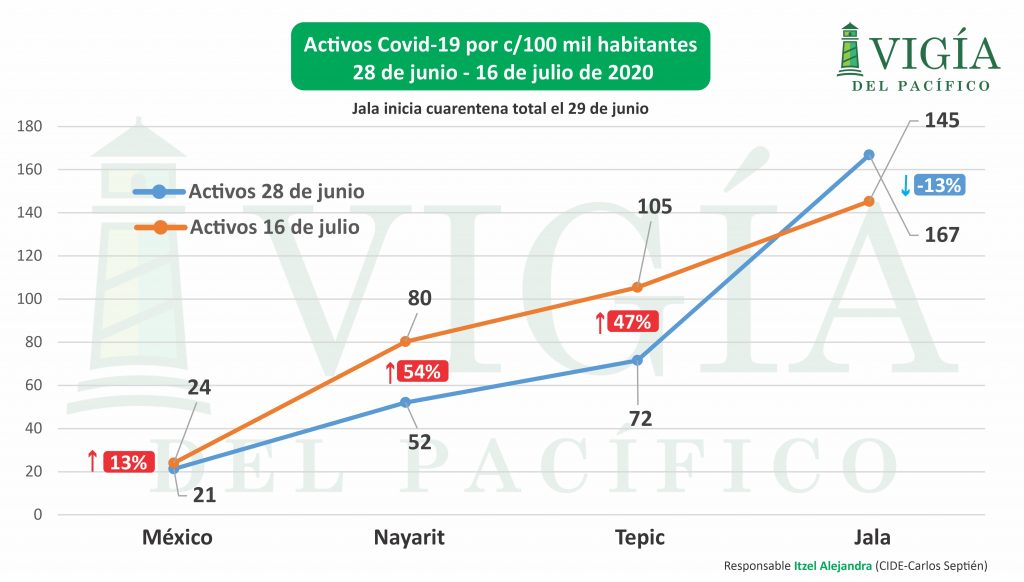 1️⃣ La estrategia de confinamiento y cuarentena del municipio de Jala 😷 impuesta por el Gobierno de Nayarit el pasado 29 de junio sí logró su objetivo de disminuir las personas activas con Covid-19 🦠 y mostrar menor crecimiento de decesos ⚰️ por la misma causa.