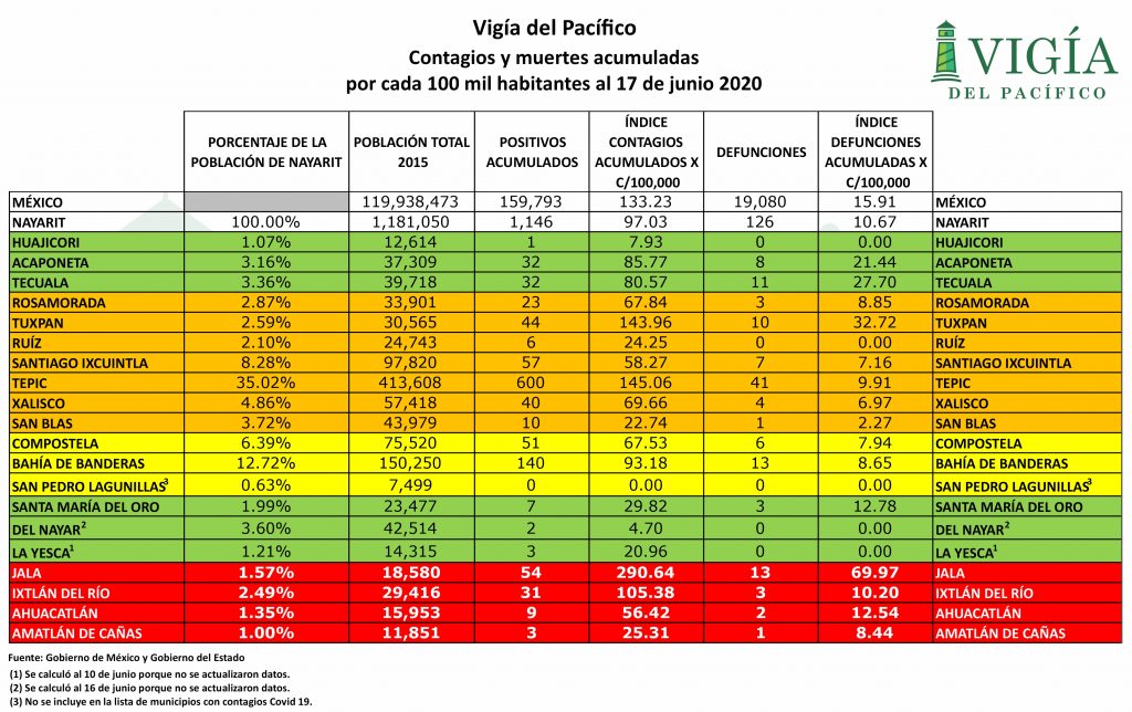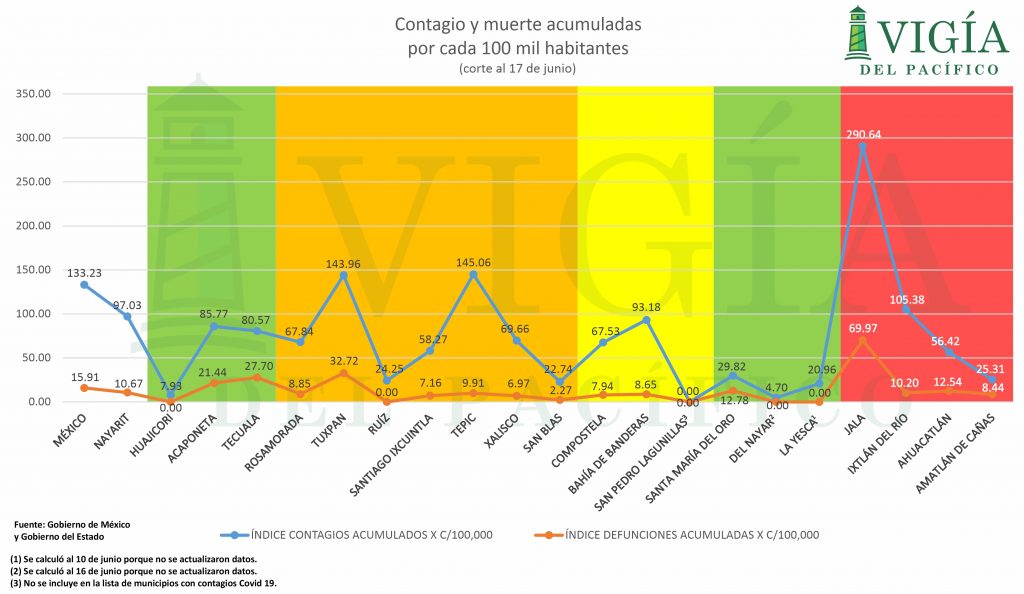 Tepic y Bahía, en el promedio estatal. Cinco municipios sin fallecimientos.