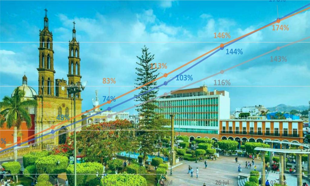 2️⃣ El 21 de junio México contaba con 180 mil 545 casos, Nayarit 😷 con 1 mil 320 y Tepic con 672; para el 28 de junio 📊 se incrementaron en México 20%, Nayarit 25% y Tepic 24%, pero el 12 de julio comenzó una separación: México llegó a 66%, 📊Nayarit 83% y Tepic 74%, el 26 de julio llegamos a México 116%, Nayarit 146% y Tepic 144% de crecimiento, y en el corte del 9 de agosto se nota una diferencia mayor: México con 480 mil 278, incremento del 166%,📈 Nayarit alcanzó 3 mil 979, subiendo 201%, y Tepic cerró 📉 con 2 mil 68, representando un crecimiento de 208%.