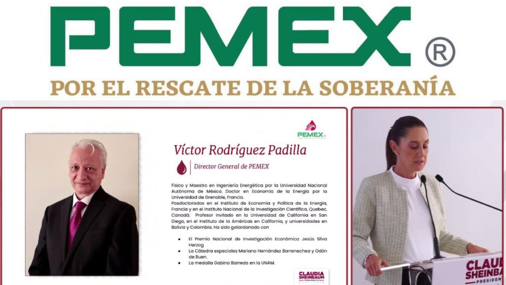 * Claudia Sheinbaum nombró a Víctor Rodríguez Padilla como director de Petróleos Mexicanos; es físico y maestro en Ingeniería Energética, y doctor en Economía de la Energía.